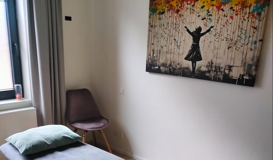 Het kabinet is op het eerste verdiep met enkel een trap. Is dit niet mogelijk voor u, contacteer me dan voor een eventueel huisbezoek.